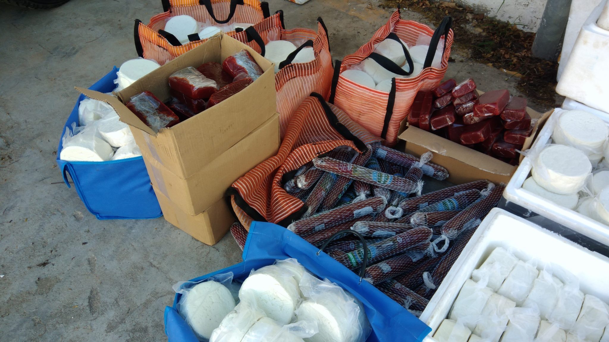 No total foram apreendidos 791 queijos, 131 goiabadas, 42 salames, 13 caixas de isopor, 10 sacolas de feira, três carrinhos de metal e duas caixas plásticas.