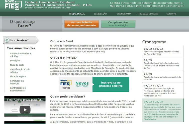 O processo de complementação deve ser feito por meio do acesso à página do Fies na internet: www.fies.mec.gov.br.