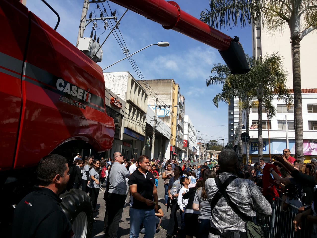 O final do desfile cívico que comemorou os 364 anos de Sorocaba, no Centro, foi marcado por duas novidades: uma colheitadeira jogou balas para o público que estava na Praça Coronel Fernando Prestes e um bolo de 20 metros de comprimento foi preparado para ser servido às pessoas que acompanharam a comemoração.