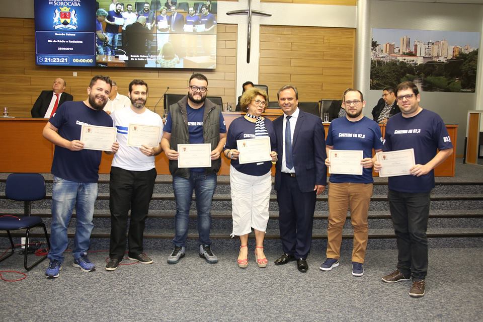 Com o plenário e a galeria lotados e a presença de diversos profissionais do rádio sorocabano, o Dia do Rádio e o Dia do Radialista foram celebrados em sessão solene da Câmara Municipal de Sorocaba na noite desta terça-feira (25) por iniciativa do vereador Fausto Peres (Podemos), que também é radialista.