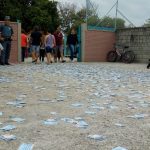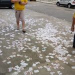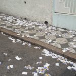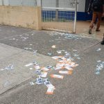 - Santinhos espalhados no entorno da Escola Estadual Antonio Padilha