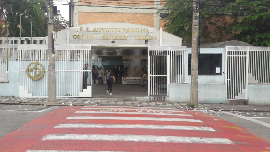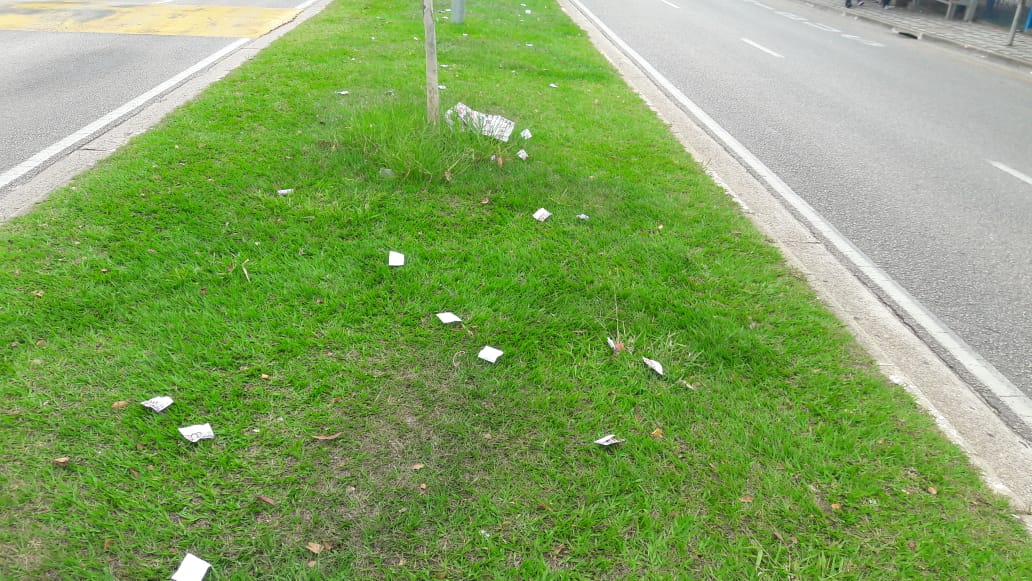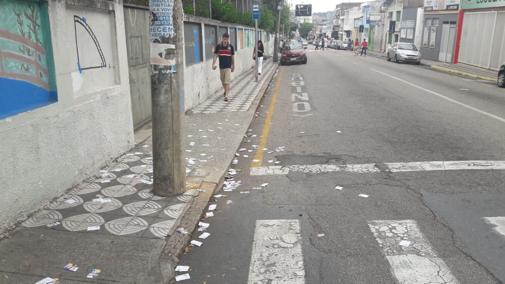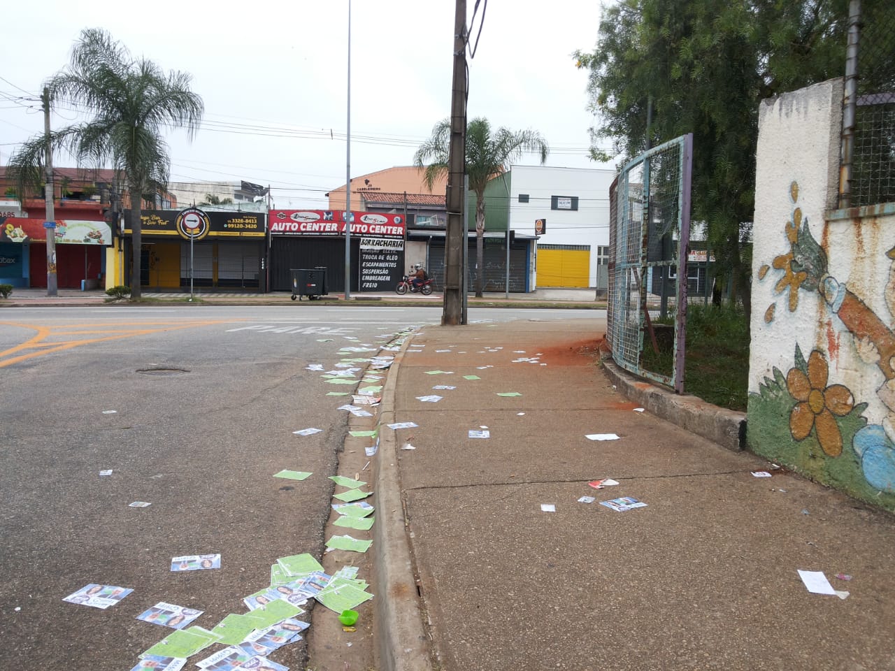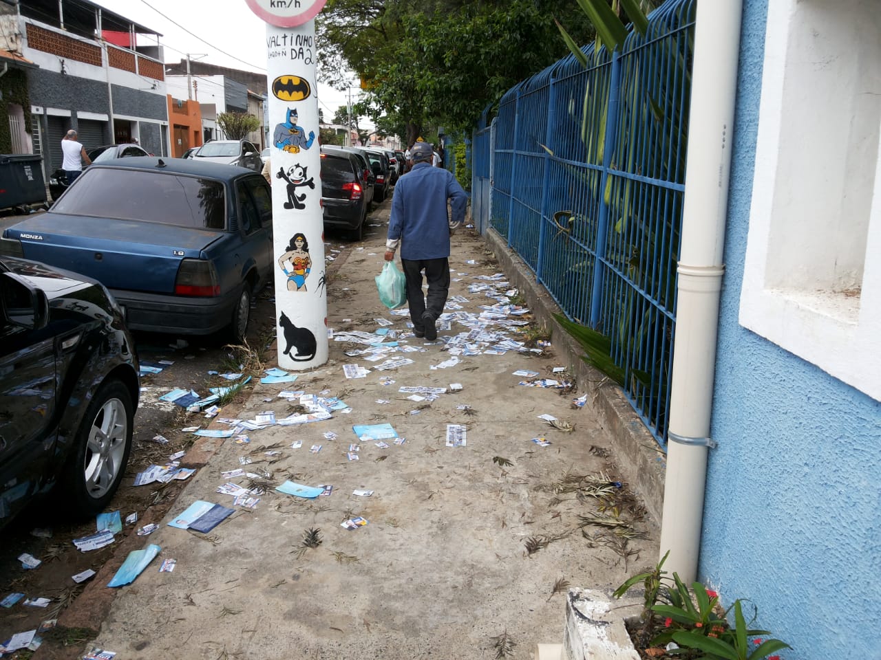 - Santinhos espalhados no entorno da Escola Estadual Antonio Padilha