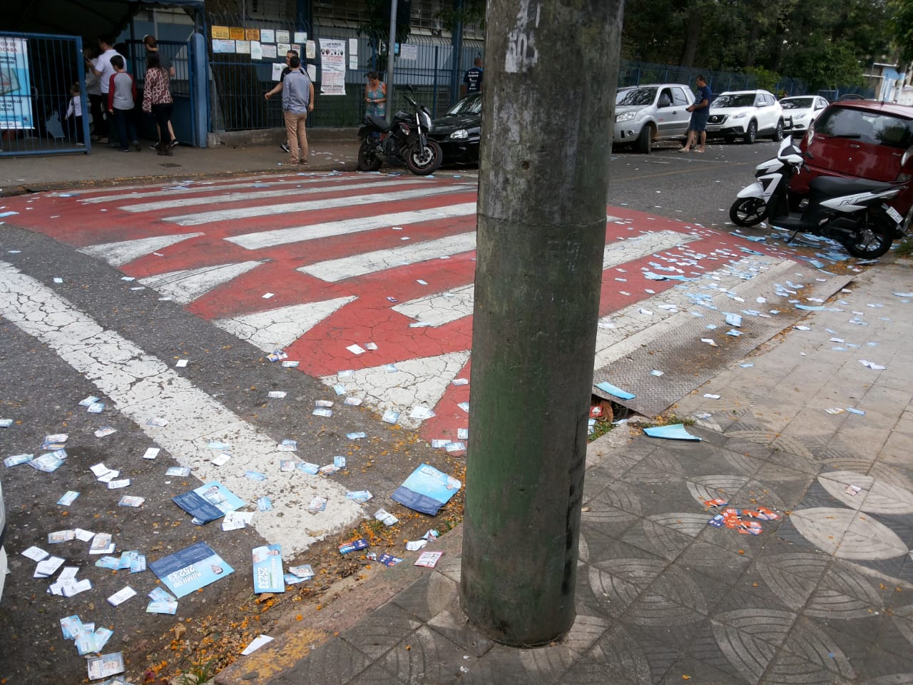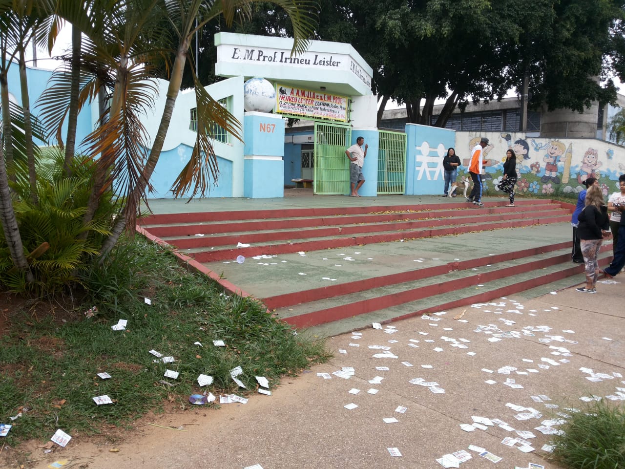 - A Escola Estadual Francisco Eufrásio Monteiro foi uma das que mais sofreu com a sujeira dos santinhos