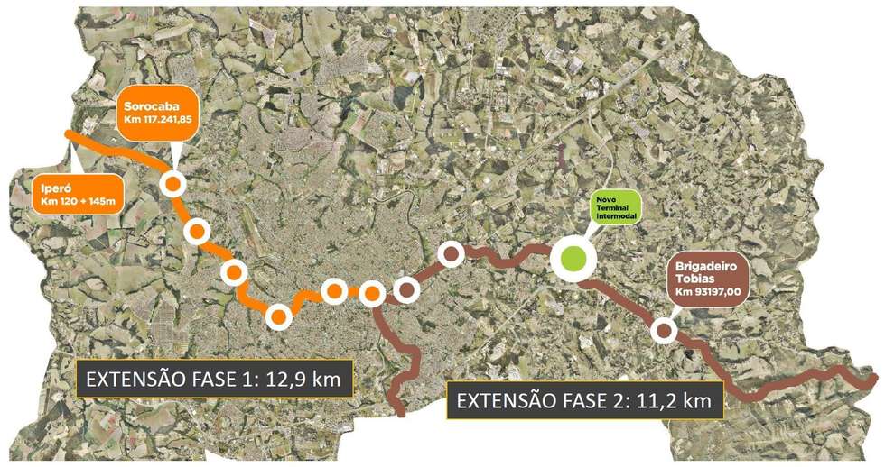 O VLT circulará dentro de Sorocaba desde a região próxima de George Oeterer, em Iperó, até o bairro Brigadeiro Tobias. Nesse percurso haverá vários modernos pontos de embarque e desembarque de passageiros, inclusive utilizando Estação Ferroviária no centro e um ponto de embarque e desembarque no Alto da Boa Vista, que concentra os serviços administrativos da cidade, com o ponto final na estação desativada de Brigadeiro Tobias.
