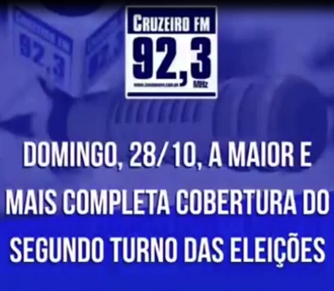 A Cruzeiro FM, 92,3Mhz, entrará no ar neste domingo (28) uma hora antes da abertura dos locais de votação para fazer a maior e mais completa cobertura do 2.º turno das Eleições 2018.