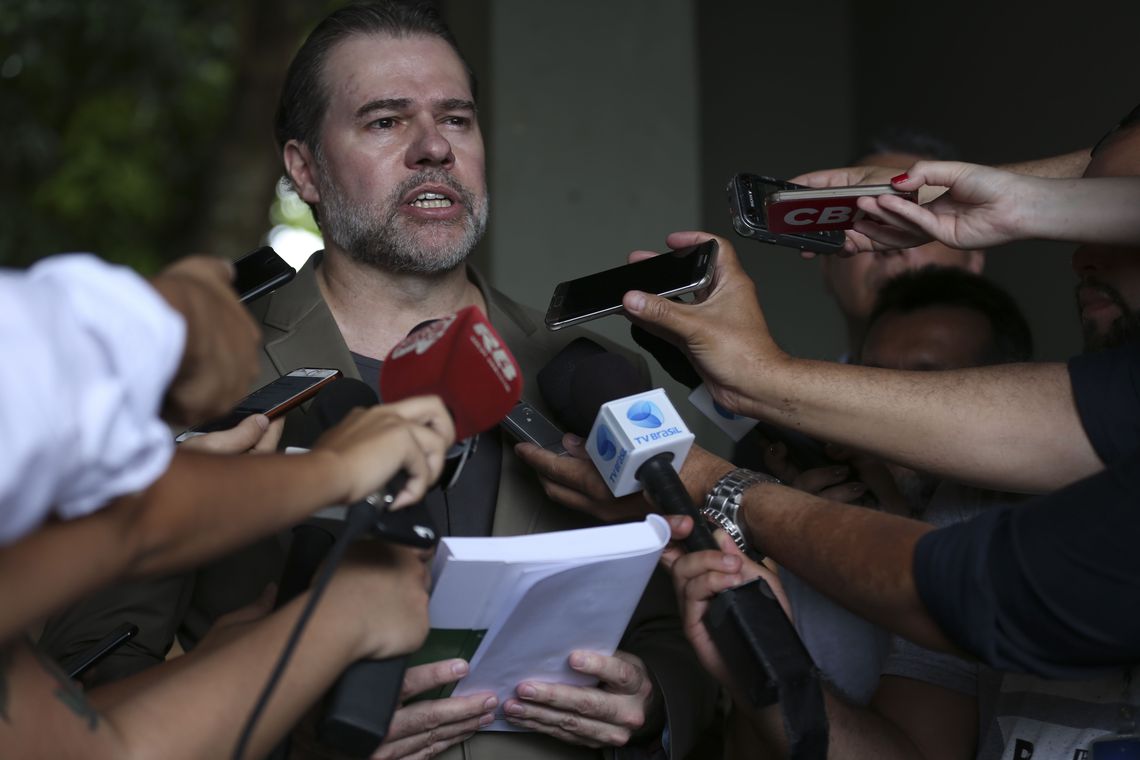 Com a Constituição Federal nas mãos, Toffoli fez um rápido pronunciamento à imprensa no qual cobrou, do próximo presidente do Brasil, a promoção do bem de todos.