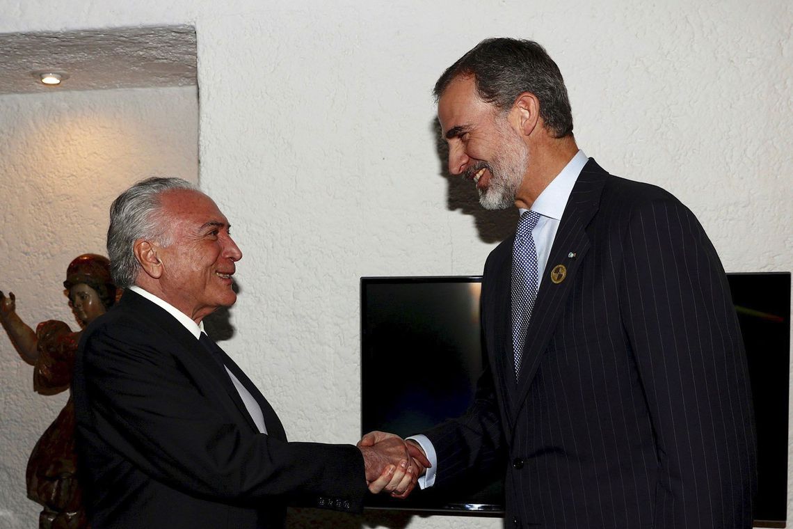 “Tive encontro muito produtivo com o rei da Espanha, Felipe VI, na Guatemala. O rei mostrou-se confiante diante da agenda de reformas no Brasil e mencionou continuado interesse das empresas espanholas em investir em nosso país. Agradeci ao rei Felipe VI as palavras positivas sobre a retomada do crescimento no Brasil e falei do processo de transição tranquilo e transparente que estamos conduzindo”, postou o presidente brasileiro no Twiter.