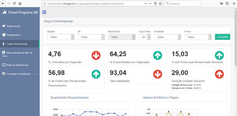 O Ministério do Trabalho lançou o Painel de Informações do Programa Seguro-Desemprego, uma plataforma virtual que permite o acesso a dados e indicadores de acompanhamento do benefício. O painel pode ser acessado por qualquer cidadão, sem necessidade de cadastro ou senha na página: http://dadospublicos.mte.gov.br/