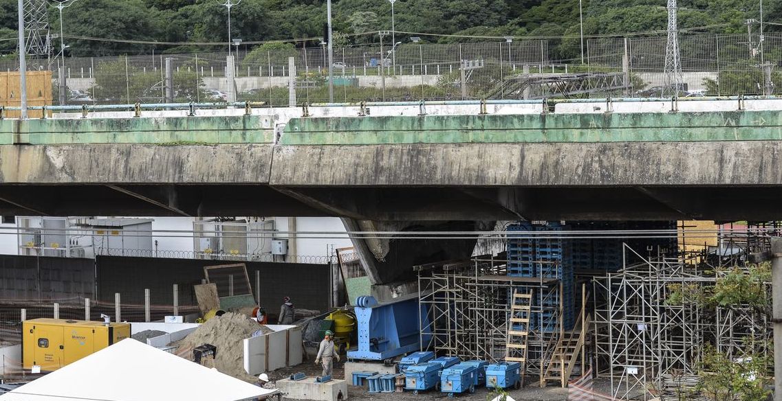 Prefeitura de São Paulo instala macacos hidráulicos para erguer viaduto da Marginal do Pinheiros, que cedeu no dia 15 de novembro.