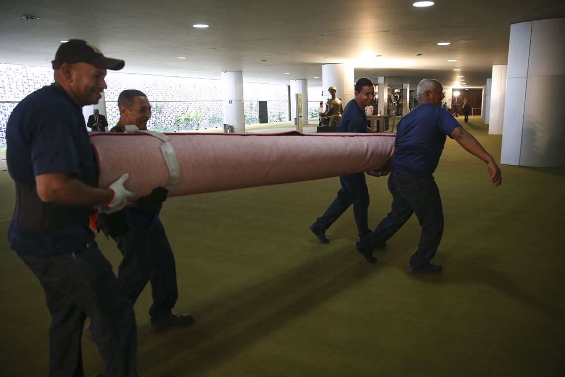 Há pintores, jardineiros, serralheiros, eletricistas, gesseiros e a equipe de limpeza, que apertam cuidam de cada detalhe na preparação da recepção de cerca de 2 mil convidados que irão acompanhar a cerimônia de posse. na área interna do Congresso, no dia 1º  de janeiro. Um jardim está sendo montado no Espaço Cultural Ivandro Cunha Lima , no corredor de acesso ao Anexo I da Câmara e do Senado. Por ali vão passar os chefes de Estado convidados para a posse.