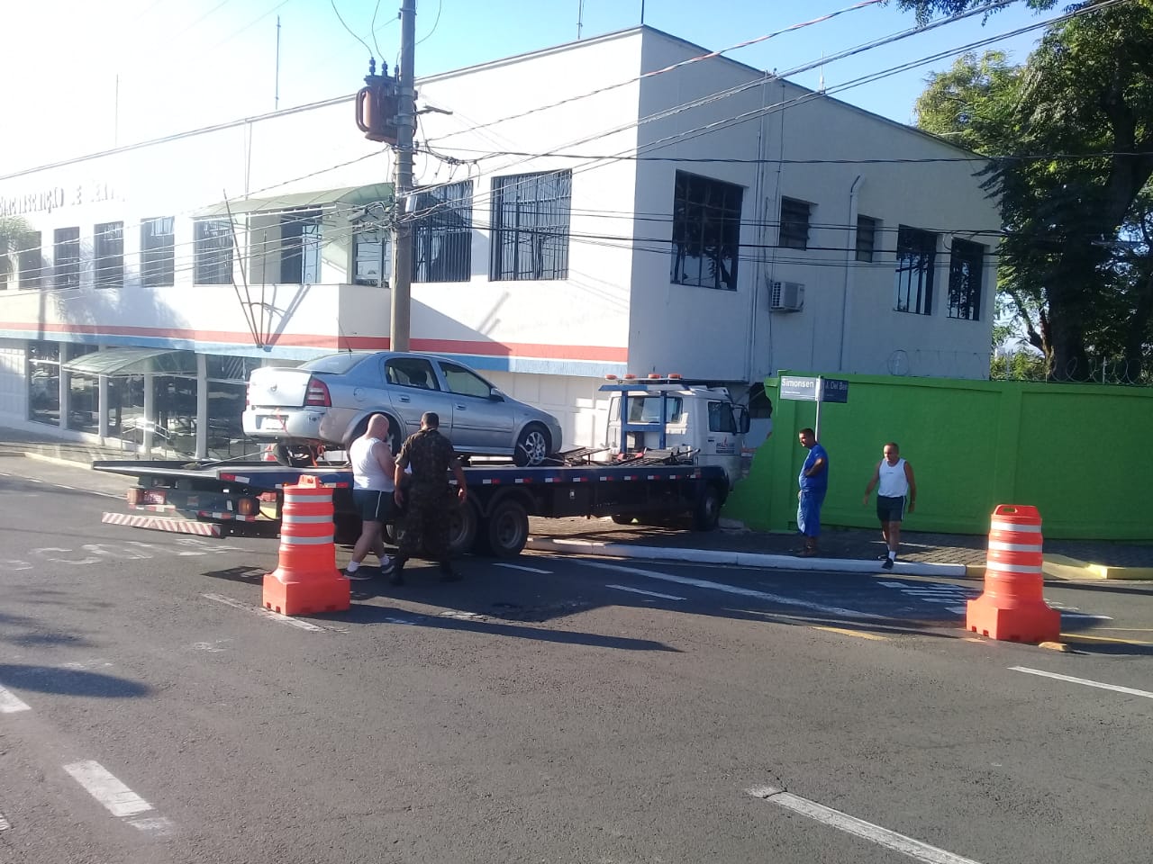Um caminhão guincho derrubou parte do muro da 14.ª Circunscrição do Serviço Militar (CSM), na Avenida Roberto Simonsen, no bairro de Santa Rosália, na manhã desta terça-feira (2).