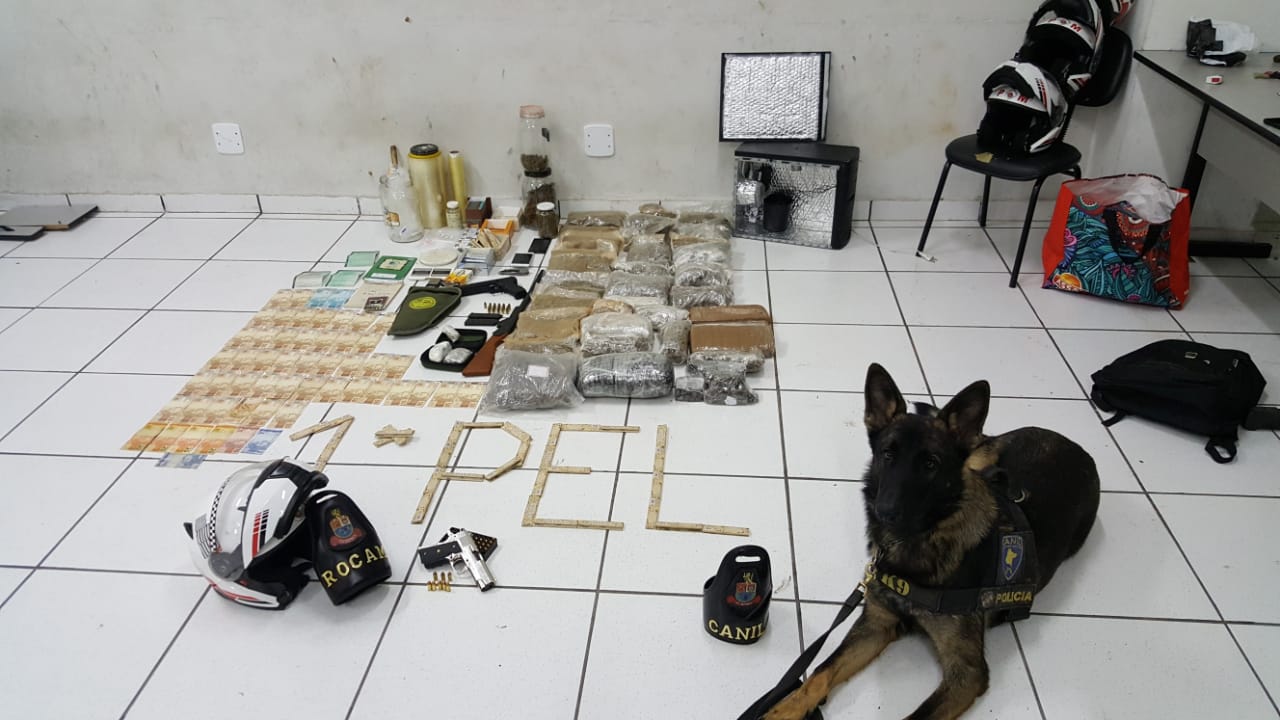 Três pessoas foram presas por tráfico de drogas no Parque Ouro Fino, em Sorocaba, nesta quinta-feira (25). Na casa em que os três estavam foram apreendidos mais de 13 quilos de maconha, além de armas, munições e dinheiro. A localização dos entorpecentes contou com o ajuda de cães farejadores da Polícia Militar.