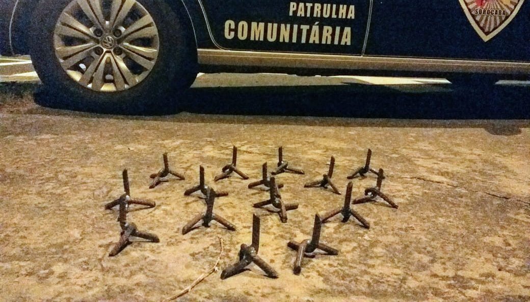 A Guarda Civil Municipal (GCM) apreendeu cerca de 15 “miguelitos”, uma espécie de cruz formada por pregos entrelaçados para furar pneus de carros, na avenida Rudolf Dafferner, no Alto da Boa Vista, em Sorocaba, perto do Paço Municipal. A ocorrência ocorreu na madrugada desta sexta-feira (14), por volta das 3h.