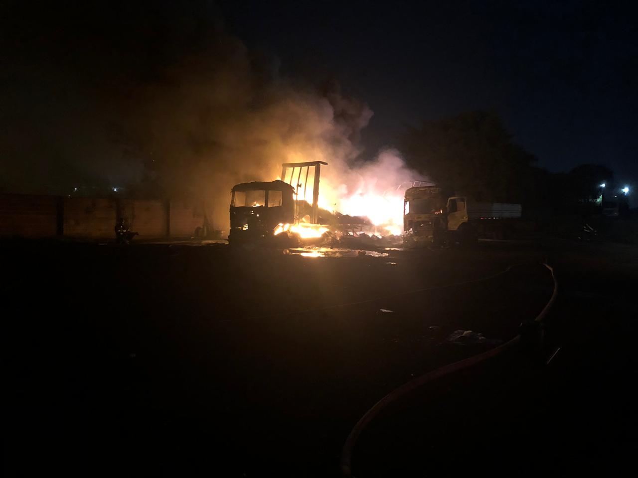 Os veículos estavam carregados com fios de cobre e tudo ficou destruído mesmo com o trabalho do Corpo de Bombeiros para combater às chamas.
