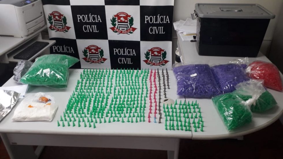 Ao todo, os policiais apreenderam 526 pinos e três embalagens totalizando 1,3kg de cocaína, mais 5 mil tubos vazios que seriam enchidos com a droga. Os homens foram presos em flagrante e o adolescente foi liberado na presença da responsável.
