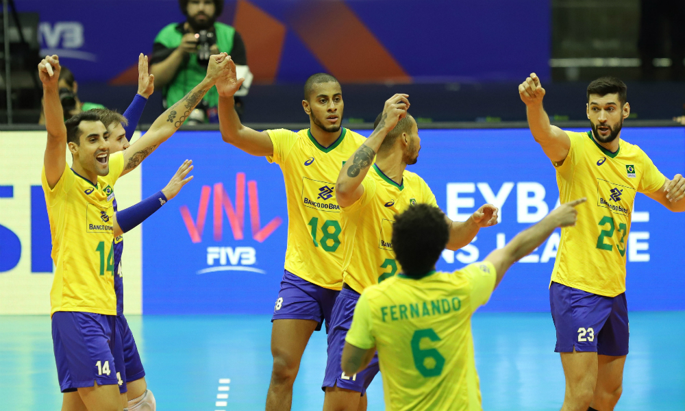 O Brasil tomou um susto no primeiro set, mas mostrou a força do seu conjunto e ganhou mais um jogo na Liga das Nações – o 14º em 15 disputados. Neste domingo (30.06), a seleção brasileira masculina de vôlei venceu a Itália por 3 sets a 1, de virada, com parciais de 26/28, 25/22, 25/18 e 25/18) na despedida da torcida brasileira, no ginásio Nilson Nelson, em Brasília (DF), contando com cerca de 9.500 pessoas.
