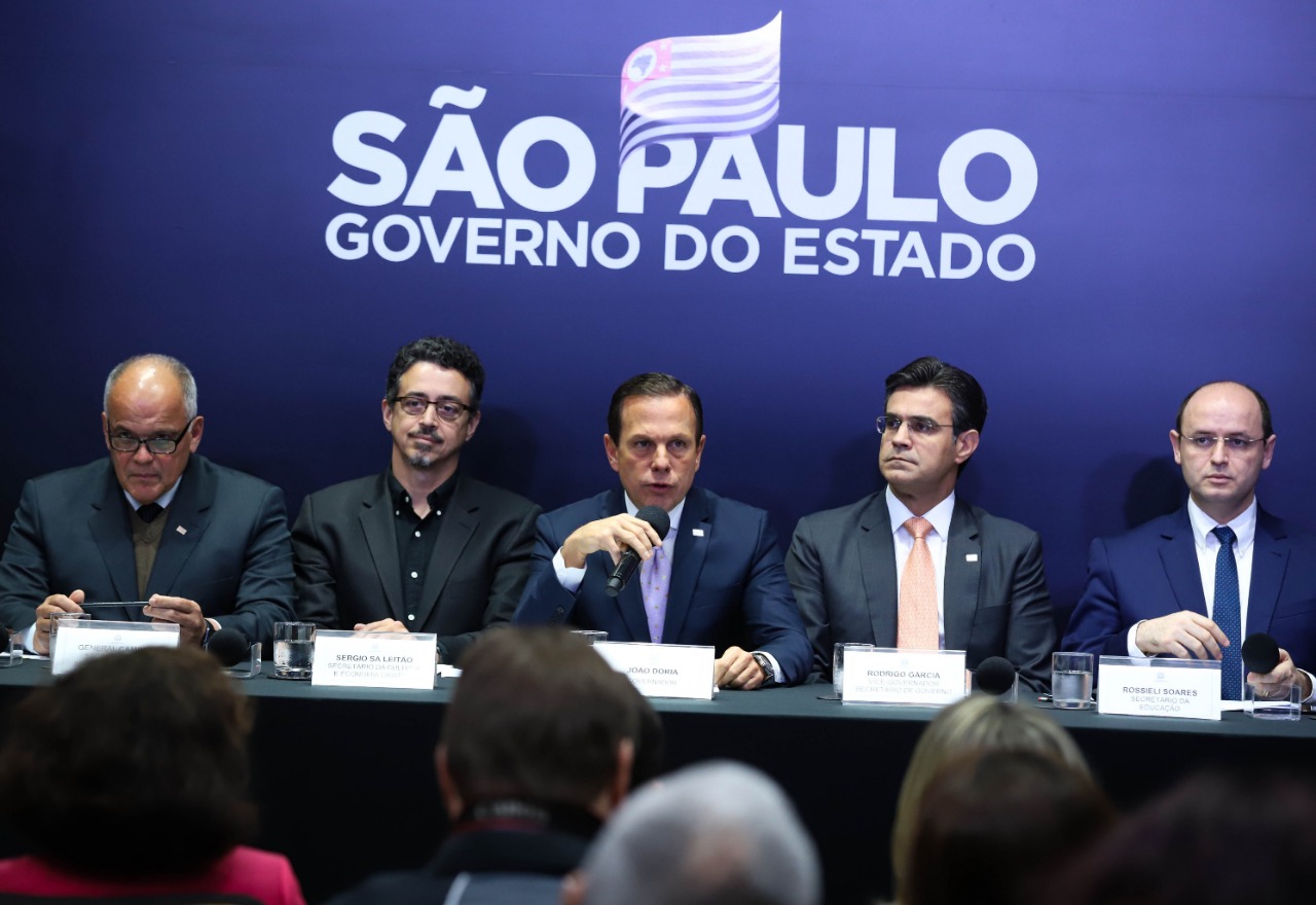 O Governador João Doria, os secretários da Educação de São Paulo, Rossieli Soares, e da Segurança Pública, general João Camilo Pires de Campos, anunciaram nesta sexta-feira (5) o programa Escola mais Segura. A iniciativa tem como objetivo reforçar a segurança em unidades de ensino estaduais por meio da Polícia Militar, empregando policiais de folga e adquirindo novas viaturas para o programa Ronda Escolar.