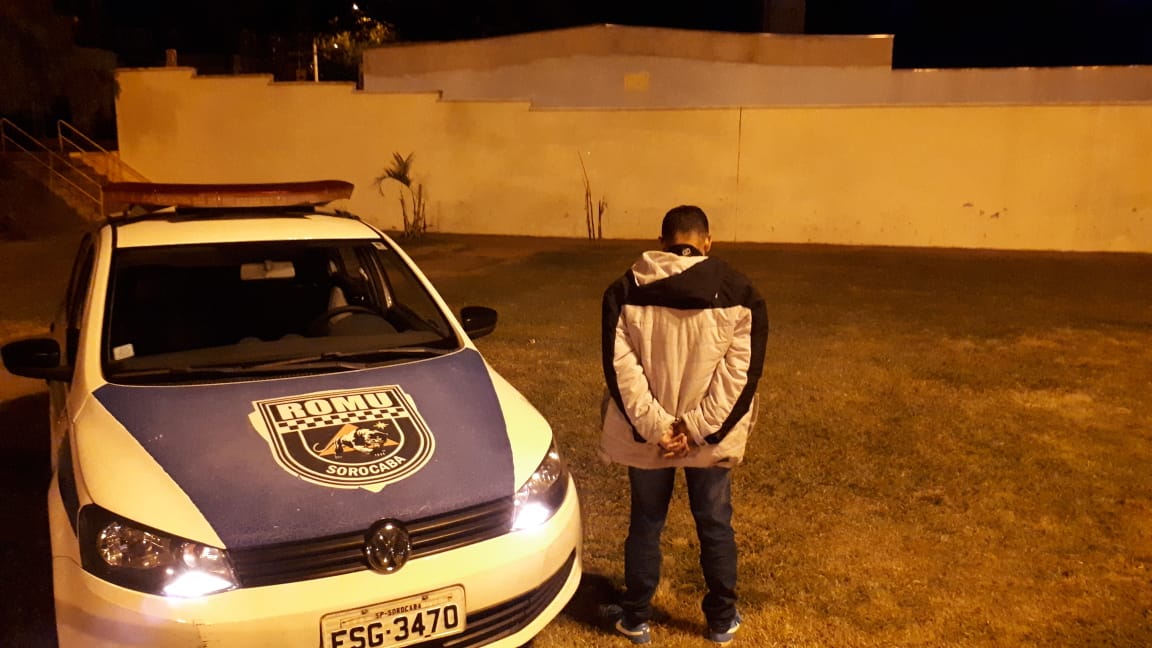 Na noite de ontem (7), a Ronda Ostensiva Municipal – ROMU realizava patrulhamento no bairro do Éden, quando foi solicitada por um munícipe que não quis se identificar. O cidadão relatou aos guardas que na Praça João de Abreu Molina, havia um individuo que vestia blusa bege de listra escura, calça jeans e tênis azul, estaria comercializando entorpecentes pelo local.