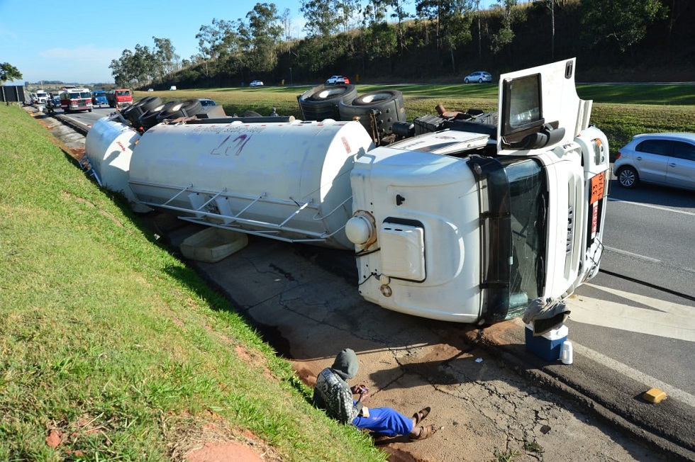 Um caminhão tanque carregado com etanol tombou no quilômetro 88 da rodovia Castelo Branco (SP-280), em Sorocaba. O acidente ocorreu na madrugada desta segunda-feira (22), pouco depois da meia-noite, na pista sentido capital.