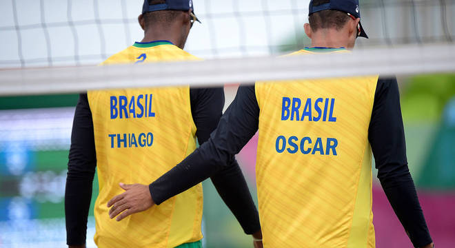 A dupla brasileira Thiago e Oscar bateu os uruguaios Vieyto e Cairus por 2 sets a 0 nesta quinta (25) e conquistou a segunda vitória nos dois primeiros jogos do torneio de vôlei de praia dos Jogos Pan-Americanos de Lima. As parciais foram de 21/16 e 21/14. Na estreia, quarta (24), bateram Alpizar e Valenciano, da Costa Rica.
