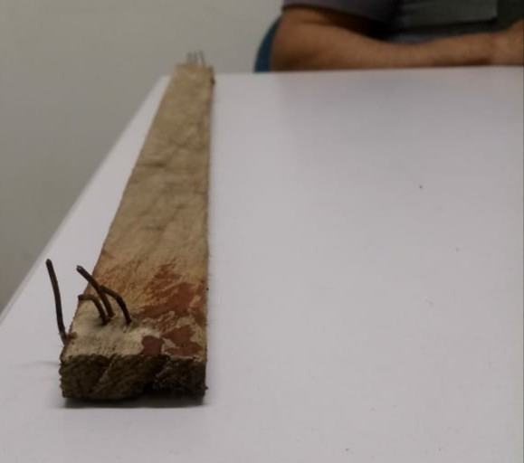 A PM procurou o suspeito nas imediações da rodoviária e encontrou um indivíduo com as características passadas pela vítima. Ele estava segurando uma ripa de madeira, suja de sangue .