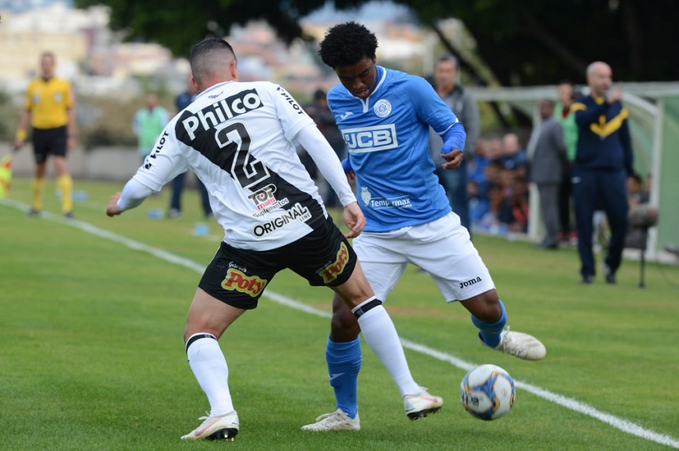 Em uma cobrança de falta de Diego Renan, a bola foi em direção à cabeça de Renan Fonseca. Ele fez o desvio na entrada da área e o goleiro Gabriel Félix fez uma grande defesa com a mão direita.