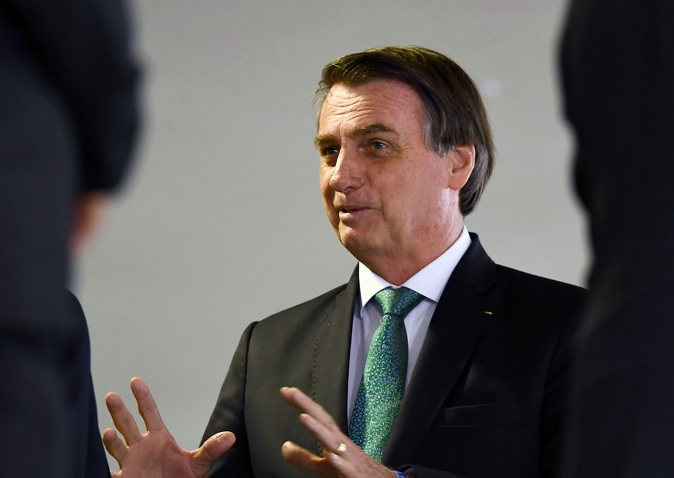 Brazilian President Jair Bolsonaro gestures during a ceremony to announce measures to stimulate the economy at Planalto Palace in Brasilia, on July 24, 2019. According to the government, the measures will be in force in September and they are planned to inject 42 billion reals (around 11 billion dollars) in the economy by 2020. / AFP / EVARISTO SA