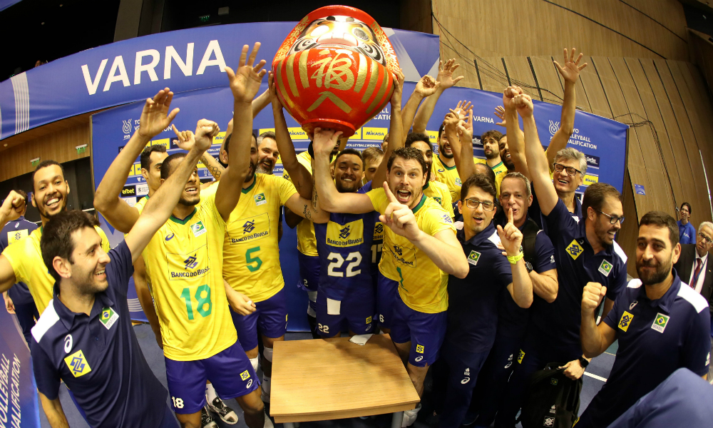 A seleção masculina de Vôlei do Brasil carimbou vaga nos Jogos Olímpicos de Tóquio 2020 ao vencer a Bulgária neste domingo(11). Após estar perdendo por 2 sets a 0, a seleção virou para 3 a 2 e vai defender o título olímpico ano que vem, as parciais do jogo foram de 23-25, 19-25, 32-30, 25-16 e 15-11.