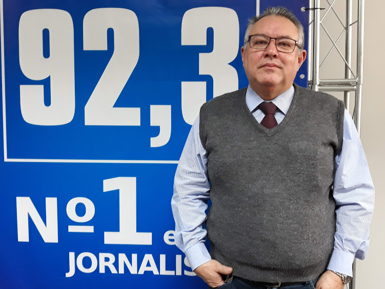 O delegado do 8.º DP, Acácio Aparecido Leite, na bancada do Jornal da Cruzeiro