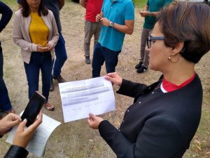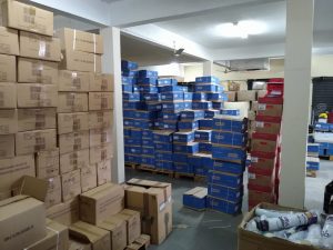 Jaqueline Coutinho vistoria material escolar estocado em Sorocaba