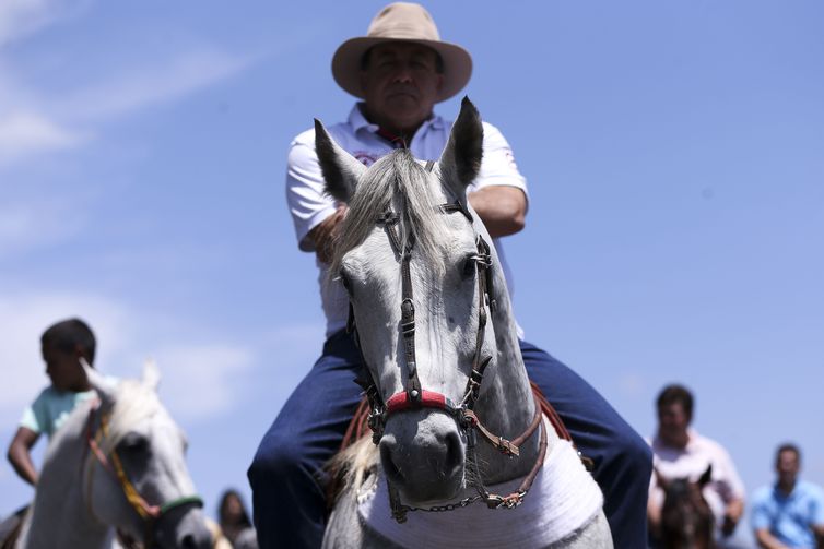 Brasília - Vaqueiros protestam, na Esplanada dos Ministérios, contra a proibição da vaquejada. (Marcelo Camargo/Agência Brasil)
