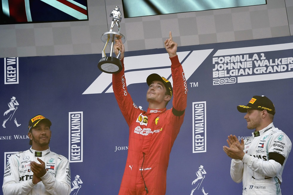 A Ferrari, que havia feito a dobradinha no sábado na sessão classificatória, ficou perto de colocar seus dois pilotos na primeira fila no traçado belga, mas Sebastian Vettel, que chegou a liderar a prova, caiu de rendimento e chegou em quarto, levando um ponto a mais por ter feito a volta mais rápida. O alemão completou um ano sem triunfos na F1 no último dia 26. Neste dia, em 2018, ele venceu justamente o GP da Bélgica.