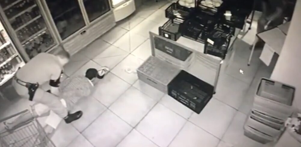 Ao chegarem ao local, os guardas encontraram a porta do estabelecimento estourada e parcialmente levantada, além de três caixas cofres no solo, próximo da entrada. Ao adentrarem no local, surpreenderam o homem, que se rendeu. A ação foi registrada pelas câmeras de segurança do local.