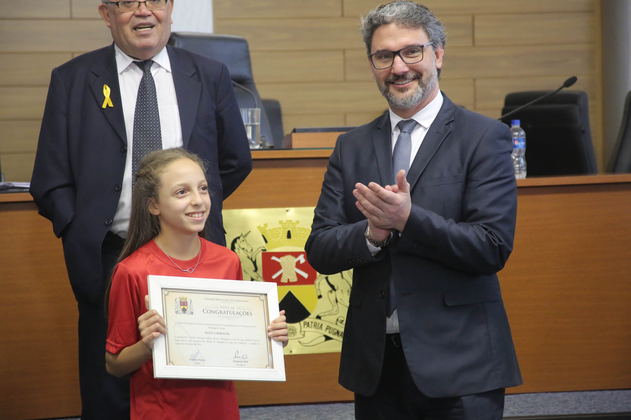 Após as conquistas como bicampeã da Copa das Federações e campeã do Campeonato Brasileiro de Tênis, Alice Ghiraldi, 10 anos, recebeu nesta quinta-feira, 05/9, votos de congratulações da Câmara Municipal de Sorocaba.
