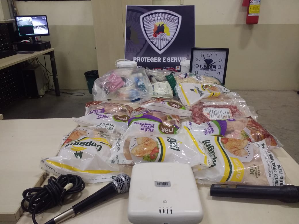 Utilizando de ferramentas, T.R.S. de 21 anos e sua companheira de 16 anos, estouraram cadeado e portas para subtraírem alimentos, eletrônicos e material de escritório, ao qual estavam separados dentro de um saco preto e também na mochila.