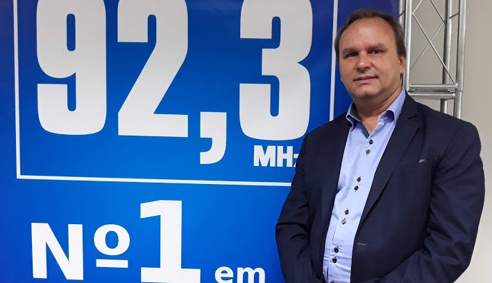 O vereador Fausto Peres (Podemos) na bancada do Jornal da Cruzeiro