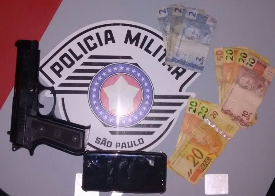 Com o acusado foram encontrados o celular de uma das vítimas, parte do dinheiro roubado e a réplica de uma arma, que teria sido utilizada durante o assalto.