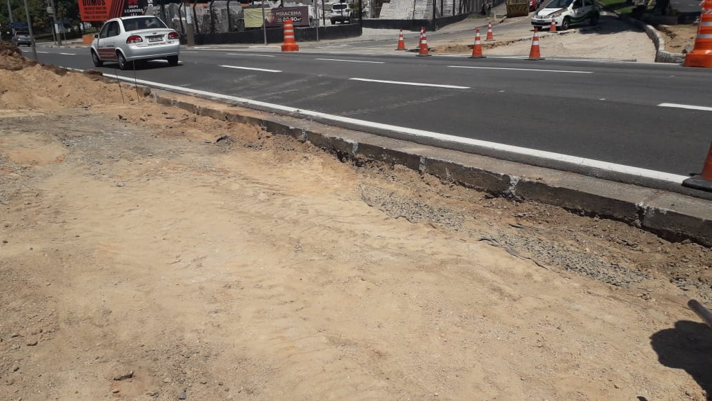 Quem passa pelo local já pode observar o requadramento feito no canteiro central da Pereira da Silva, com a implantação de novas guias. Cones foram colocados provisoriamente próximos às novas guias para evitar acidentes.