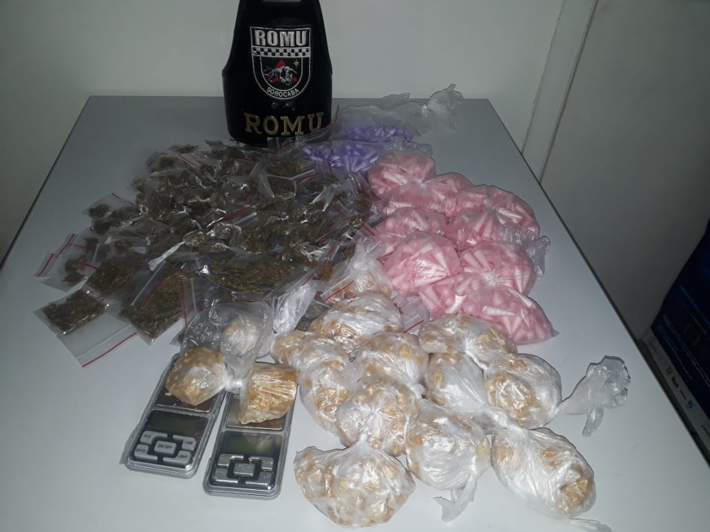 Com o adolescente foram localizados 644 pinos de cocaína na mochila e, embaixo da cama do proprietário da casa, havia uma sacola com 980 pedras de crack, 244 porções de maconha, duas pedras brutas de crack e duas balanças de precisão.