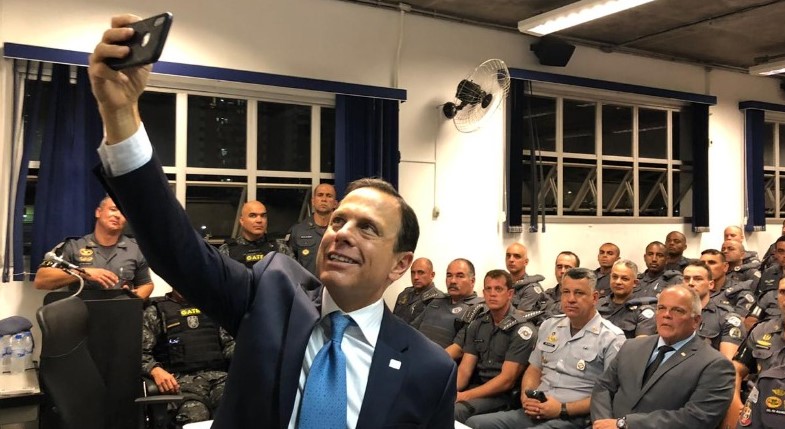 O governador João Doria (PSDB) foi a Campinas no começo da noite desta quinta-feira (17) para parabenizar os policiais militares envolvidos na ocorrência do assalto seguido de uma situação com reféns no Aeroporto Internacional de Viracopos e na região do bairro Vida Nova.