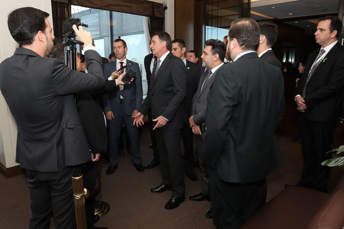 Hoje, Bolsonaro se reuniu com o primeiro-ministro do Japão, Shinzo Abe, na busca por novos negócios com o país asiático. “É mais um passo para o acordo comercial entre Mercosul e Japão”, disse o presidente. A exportação de carne brasileira e acordos em ciência e tecnologia também estão na pauta da reunião.