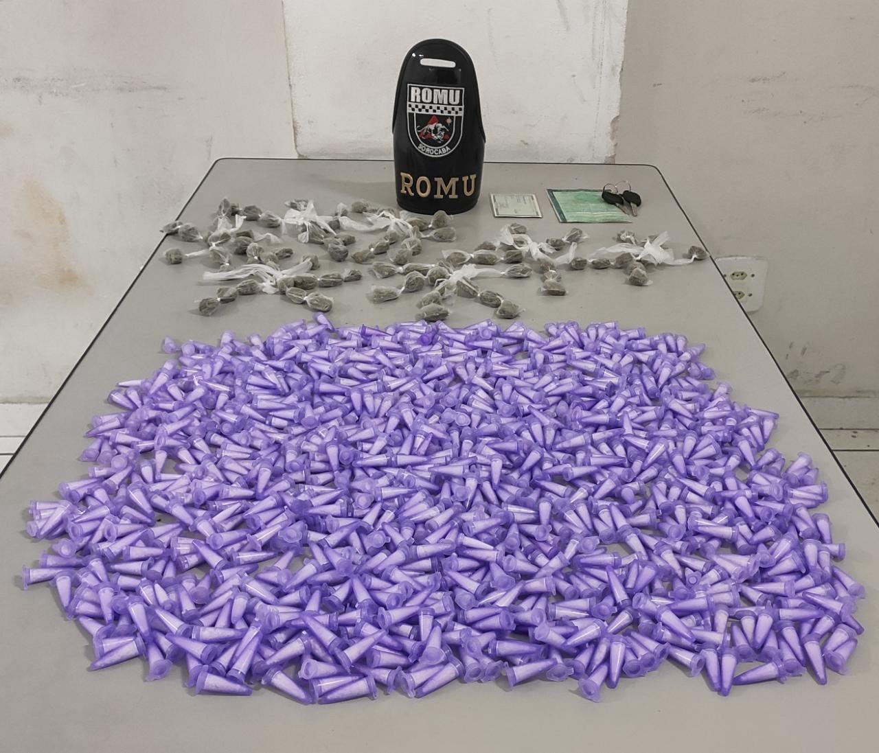 Com D.M.M de 21 anos estavam 20 porções de cocaína e 10 porções de maconha. Já no veículo foi localizada uma sacola contendo 81 porções de maconha e 1.064 porções de cocaína, totalizando 1.175 porções de entorpecentes.