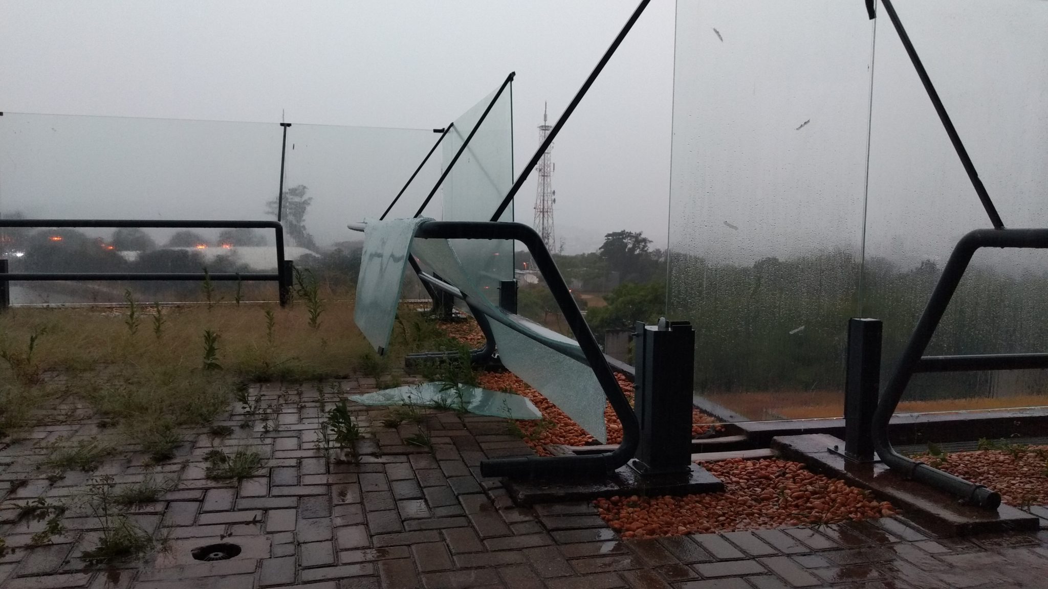 A área já estava isolada e assim permanecerá. Por questão de segurança, todo o gradil envidraçado será retirado. Ainda pensando na segurança dos servidores e de frequentadores da Prefeitura, uma parte do térreo, próximo à entrada dos carros oficiais, recebeu isolamento pelo risco de queda do material estilhaçado.