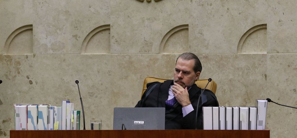 O presidente do STF, ministro Dias Torroli, durante sessão de julgamento sobre a constitucionalidade da execução provisória de condenações criminais, conhecida como prisão após segunda instância