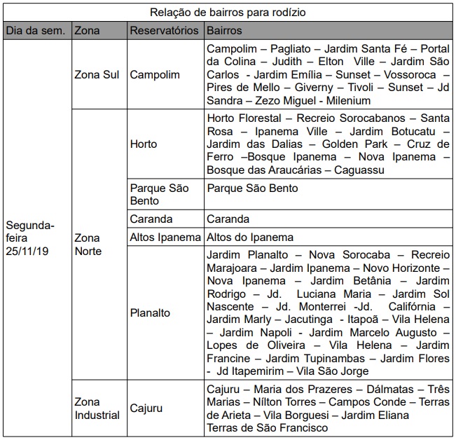 O rodízio no abastecimento de água entra na quarta semana em Sorocaba. Nesta segunda-feira (25), 68 bairros das zonas sul, norte e industrial terão o fornecimento interrompido às 17h e retomado às 3h da madrugada de terça-feira (26).
