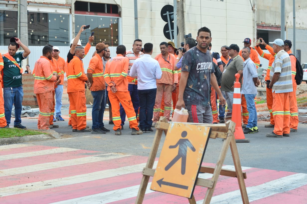 Os funcionários de uma empresa terceirizada que foi contratada para as obras do BRT fecharam a avenida Itavuvu, na manhã desta segunda-feira (9) em protesto pelos salários atrasados.