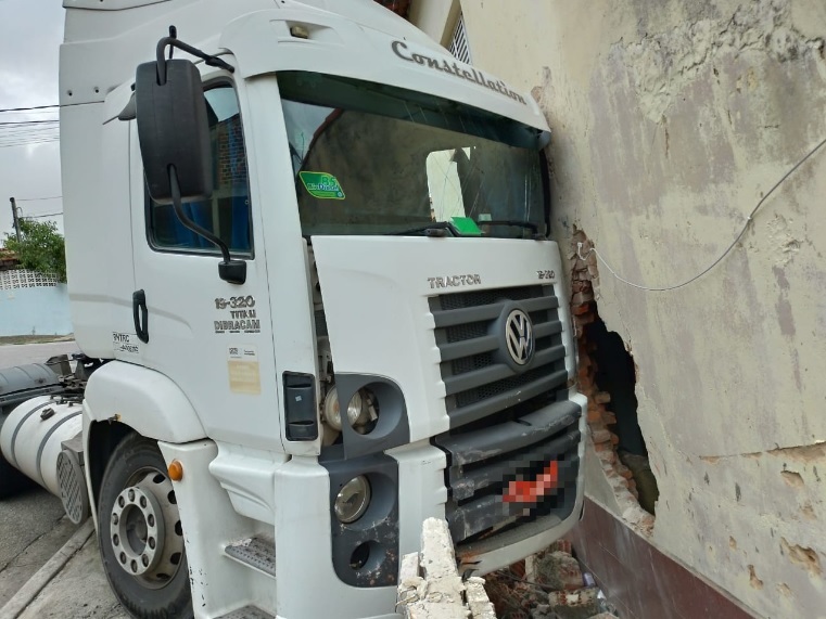 O acidente foi registrado nesta quarta-feira (11), por volta das 9h, na rua Antônio Joaquim Lisboa – travessa da avenida José Joaquim de Lacerda. Segundo uma testemunha, o caminhão teria perdido o freio e parou somente com o impacto na residência.