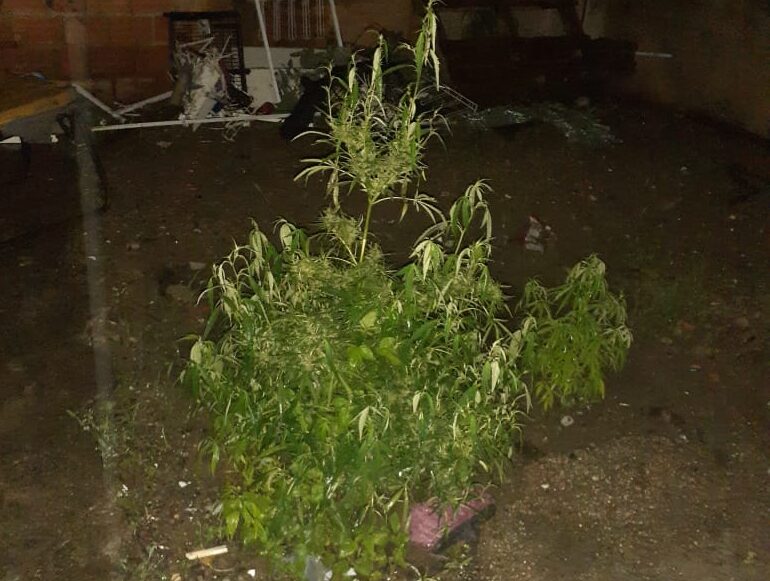 Na abordagem foram localizadas porções de maconha e no quintal, localizado nos fundos do salão, foram encontrados três pés da erva.