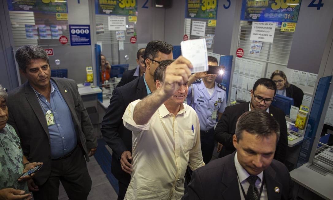 A loteria fica no Cruzeiro Velho, bairro tradicional de Brasília. Na loteria, Bolsonaro cumprimentou pessoas que também faziam o jogo e mostrou a mão com os números anotados, entre eles 13, 24 e 25.