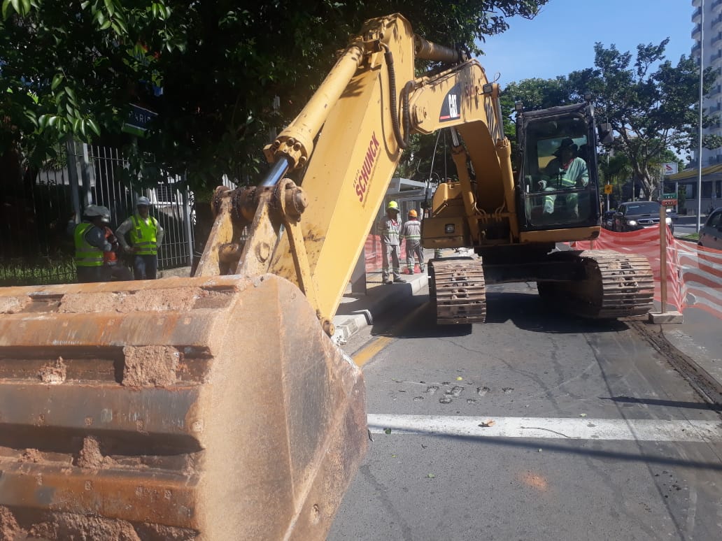 As obras no ponto de ônibus em frente à ETEC Rubens de Farias e Souza, na Av. Pereira Inácio, sentido bairro, começaram na sexta-feira (27) com as primeiras intervenções. A equipe de trabalho da Concessionária BRT já isolou a área, deixando parte da calçada livre para os pedestres, e máquinas vão retirar o atual pavimento da via.
